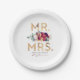 Herr und Frau Burgundy Red and Gold Floral Typogra Pappteller