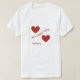 Ihr Nachname und zwei rote Herzen heben die Vorderseite dieser Hochzeitsthemen T - Shirt hervor. Etablierte und Ihr Hochzeitstermin geht auf der Rückseite (oder löschen, wenn gewünscht).