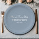 Fügen Sie Ihrem nächsten besondere Anlass mit dem Mr. und Mrs. Elegant Simple eine Touch von Eleganz und Eleganz hinzu | Dusty Blue Paper Teller personalisiert mit Ihrem Familiennamen und Hochzeitstag.