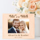 Strohgedecktes Foto mit dem Text "Mr. and Mrs." oben in einem Retro-Stil Schriftart, individuelle Namen und Hochzeitstag am unteren Ende.