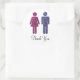Zwei Silhouetten eines Paares in rosa und blau Imitat Glitzer mit Text, der Dankeschön lautet.