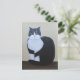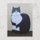 Volkskunstliche Acrylmalerei einer hübschen Schwarz-Weiß Katze, die mit seinem Schwanz ordentlich über die Füße gewickelt sitzt. Er hat kleine Ohren und große Augen. Gemalt vom Künstler Rachel Barrette.