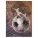 Die Fußball-Zwischenablage für grungenhafte Männer mit einer Mischung aus Fußballgrafik und einem silbrigen männlichen Fußballspieler, der einen Fußball ins Tor kickt, und einem Fußball, der das Netz auf der Rückseite des Tors verspielt - mit seinem Namen - von katz_d_zynes