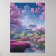 Das digitale Kunstwerk "Mansion in a Garden of Blume Poster" zeigt eine ruhige und friedliche Szene eines atemberaubenden japanischen Herrenhauses inmitten eines lebendigen Gartens. Die hellblauen Wände des Hauses harmonieren nahtlos mit dem weichen blauen Himmel und schaffen ein Gefühl von Harmonie und Ausgeglichenheit. Der Garten ist mit einer Vielzahl von bunten Blume, darunter zarte Kirschblüten, geschmückt, und ein sanfter Fluss fließt durch ihn, der das friedliche Ambiente noch verstärkt. Jenseits des Gartens steht ein kleiner, grüner Wald, seine Blätter rusteln sanft in der Brise, und der Himmel darüber ist bewölkt und kontemplativ.