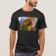 Das schwarze Tee-Shirt dieses Mannes ist mit einem schönen Ara-Papagei ausgestattet.