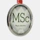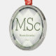 Ein Ornament für einen MSc-Absolventen mit einem grün-weißen Farbschema und einem Herringbone-Muster im Hintergrund. Es zeigt den Grad, den Namen und das Jahr. Einfach anpassen Sie dieses Ornament, fügen Sie es in Ihren Warenkorb, und haben Sie einen Vorzug dieser großen Leistung. Herringbone Green White Name MSc Abschluss Metal Ornament Holidayday Design | ©Melissa Patton - Designer