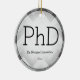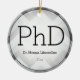 Ein Ornament für einen Doktoranden mit schwarz-grauem Farbschema und einem Herringbone-Muster im Hintergrund. Es zeigt den Grad, den Namen und das Jahr. Einfach anpassen Sie dieses Ornament, fügen Sie es in Ihren Warenkorb, und haben Sie einen Vorzug dieser großen Leistung. Herringbone Black Gray PhD Abschluss Name Jahr Keramik Ornament Holidayday Design | ©Melissa Patton - Designer