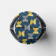 Diese Dose kühler hat ein modernes Design von Ovalen in der Marine Mitte des Jahrhunderts mit Halbkreisen in Gelbtönen und Grautönen in ihnen auf einem Feld von schwarz.