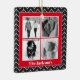 Moderne Weihnachtscollage in Rot und Schwarz mit Raum für vier Fotos. Schwarzes Herringbone-Muster und hellrote Akzente mit bearbeitbarem Text.