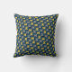 Dieser Werfer pillowhas ein modernes Design von Ovalen in der Marine mit Halbkreisen in den Farbtönen Gelb und Grau in ihnen auf einem Feld von schwarz.