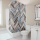 Herringbone-Muster in Blue Brown Grau Duschvorhang