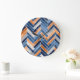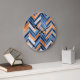 Herringbone-Muster in Navy Blue und Orange Große Wanduhr