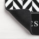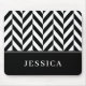 Mousepad mit einem klassischen, geometrisch-schwarz-weiß getragenen Herringbone-Streifen und personalisiertem Namensdruck in Weiß auf Schwarz.