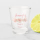 Belohnen Sie Ihre wunderbare Trauzeugin mit ihrem eigenen Schuss Glas. Mit ihrem Namen in einem schönen rosa kursiven Schriftart, ist sie ein rosa Blume Design direkt darunter. Unter der Blume ist eine "Trauzeugin" in schönem Rosa geschrieben. Ändern Sie einfach den Text, um ein Mitglied Ihres Brautparty wiederzugeben. Personalisieren Sie Ihre heutige!