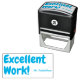 Dieses lustige Design aus Gummi-Briefmarke beinhaltet die inspirierend Feedback-Nachricht "Excellent Work!" und einen personalisierten Pädagogen-Namen. Es könnte von einem Lehrer, Erzieher, Ausbilder oder Tutor bei der Bewertung der Studentenarbeit verwendet werden, um anzuzeigen, dass ein Schüler eine außergewöhnliche Arbeit geleistet hat.