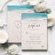 Das Hotel verfügt über einen romantischen türkisfarbenen Strand mit weißem Sand und zwei Herzen im Sand mit den Initialen der Braut und des Bräutigams auf der Rückseite, großartige RSVP-Karten für die Hochzeit des Sommers am Strand oder tropische Hochzeit in Urlaubsort.