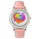 Kinderuhr aus Edelstahl mit rosa Lederarmband