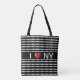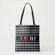 Herz und weiß gestreiftes Muster auf der schwarzen Tote Tasche.