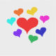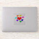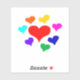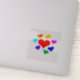 Ein 4"x4" glänzender, durchsichtiger, individuell geschnittener Vinyl-Aufkleber, aus einem Zeichn verschiedener Farbherzen (Art by P.J.M.)