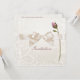 Diese elegante und liebliche romantische Hochzeitseinladung hat einen Hintergrund in sanften Elfenbeintönen, die mit blühend Wirbel und kleinen Herzen verziert sind und mit einem digitalen Satin-Elfenbeinbud (beides kann vom Design entfernt werden, wenn Sie es vorziehen) verziert sind.