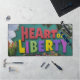 Die Schreibtischmatte sollte ein Gefühl von Freude, Freiheit und Patriotismus vermitteln. Das Blumendesign schafft eine fröhliche und aufregende Atmosphäre, während die Herzform und patriotische Farben das Thema der Freiheit verstärken.