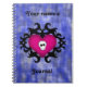 Ein niedliches Goth Damast Schädelherz in Fuchsia auf einem grungenhaften, königsblauen Hintergrund. Hier auf einem spiralgebundenen Notebook dargestellt. Personalisieren Sie es mit Ihrem Namen. Bitte Karo aus meinem Shop für mehr Spaß und spukhafte Sachen und Geschenke.
