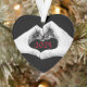 Die Hände von Paaren treffen sich und bilden ein Herz auf diesem Weihnachtsschmuck in fett schwarz und weiß mit rotem Jahr, um zum ersten Weihnachtsfest oder im laufenden Jahr personalisiert zu werden. Die Hände sind auf einem schwarzen Hintergrund gezeichnet. Auf der Rückseite, wieder rot, sind Ihre personalisierten Namen des Ehepaares. Ein romantisches Geschenk zum geben. Basierend auf der Originalfotografie von JLW_FOTOGRAFIE.