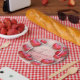 Herz-Glitzer-Papierplatte des Valentines roter Pappteller