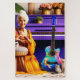 Dieses Rätsel hat eine ältere Frau mit ihren Katzen, Gitarre und Klavier, die Herz-Hände machen.