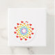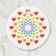 Ein weißer Gefälligkeitstag mit kreisförmigen Herzen in den Farben des Regenbogens. Sie können Ihre Nachricht auf der Rückseite des Tags schreiben.