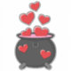 Ein Beispiel für einen niedlichen Cartoon, einen schwarzen Kessel, wo eine Hexe einen Zauber für einen Liebe-Tränk voller Rotherzen für den Valentinstag macht. Dieses niedliche Liebe-Design ist eine Geschenkidee für Hexenkunst und Magie-Liebhaber und Herzensfreunde.