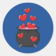 Ein Beispiel für einen niedlichen Cartoon, einen schwarzen Kessel, wo eine Hexe einen Zauber für einen Liebe-Tränk voller Rotherzen für den Valentinstag macht. Dieses niedliche Liebe-Design ist eine Geschenkidee für Hexenkunst und Magie-Liebhaber und Herzensfreunde.