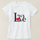 Ein Liebe-T-Shirt mit einem roten Herzen für den Buchstaben O im Wort. Das einer netten Weise, die Liebe zu teilen. Kann zu Ihrer Wahl der Shirtfarbe besonders angefertigt werden.