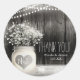 Herz Mason Jar & Gipskraut Rustikale Hochzeit Runder Aufkleber