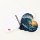 Dieses Herz-Ozean-Spiralnotizbuch zeigt ein atemberaubendes künstlerisches Design einer starken Ozeanwelle, die unter einem leuchtenden Sonnenuntergang eine Herzform bildet.