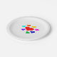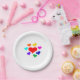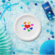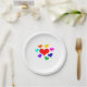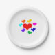 a 7", Weiß, Farbe, Rundpapier-Platte, mit einem Zeichn von mehrfarbigen Herzen (Art by P.J.M.) darauf.