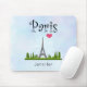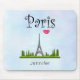 Ein personalisiertes Mauspad mit einem skurrilen zeichn des Eiffelturms im Hintergrund, umgeben von grünen Bäumen. Ein rosa Herz und eine Pariser Typografie fügen einen gürnischen Flair hinzu.
