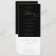 Eine ganz besondere Hochzeitseinladung mit eleganter Schriftzeichen aus Gold auf schwarzem Hintergrund. Die Einladung enthält eine RSVP-Karte, die abgeschnitten werden kann, und Informationen zu den Gästen. Entwickelt von Thisisnotme©
