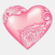 Wunderschöner Herzaufkleber mit silberweißem blüh-Scroll auf einem hellen Magenta / melonfarbenen Herz, perfekt für die Verzierung von Scrapbook-Seiten oder als Umschlag Aufkleber verwendet.