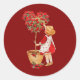 Diese T - Shirt und Karten sind mit einem Vintagen Valentinbild eines kleinen Mädchens geschmückt, das einen Rose-Busch in ein Herz-Form-Oberteil schneidet.