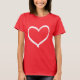 Etwas beunruhigtes weißes Druckherz auf dem roten T - Shirt des Shirts, festlichen roten des Herzens des Spaßes für, zum für Party des Valentines eines Lehrers zu tragen Tagesoder der Liebe gerade zu zeigen täglich.