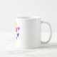 Eine weiße, 11oz klassische Tasse, mit einem Zeichn von (P.J.M), von verschiedenen Farbhörern, darauf.
