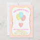 Herz und Ballons 13. Geburtstag Einladungskarte. Drei farbenfrohe Ballons aus einem rosa Herz auf weißem und rosa Hintergrund.