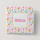 Knopf mit einem köstlichen und whimsikalen Muster. Herz, Liebe Briefe, Muffins, Tulpen und Kirschen bringen Freude und Glück in dieses niedliche kleine Muster. Hübsche Pastellfarben. Ein weißes Quadrat mit einem goldenen Imitat-Folienabrand, der oben mit dem Text im Inneren platziert ist.