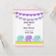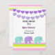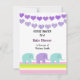 Ein niedliches Design mit lila Herz- und Babyelefanten, das durch einen Rand weicher Streifen betont wird. Passen Sie Ihre Babydusche nach Wunsch an.