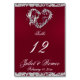 Dieses romantische Design besticht durch einen eleganten bordeauxfarbenen Hintergrund mit Glitzer-Rändern, einem Herz und Platzhalter für die Tischnummer, Pärchennamen und Veranstaltungsdatum. Erhältlich in mehreren Farben für Ihr Hochzeitsthema. (Glitzer wird im Kunstwerk simuliert). Entworfen, um sich mit der Romantic Scroll Hearts & Glitzer Wedding Collection zu koordinieren. Klicken Sie zum Ändern der Details auf "Personalisieren". Um den Text zu verschieben oder die Textgröße, den Schriftart oder die Farbe zu ändern, klicken Sie auf "Klicken Sie, um den Text weiter anzupassen".
