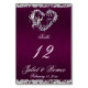 Dieses romantische Design besticht durch einen eleganten lila Hintergrund mit Glitzer-Rändern, einem Herz und Platzhalter für die Tischnummer, Pärchennamen und Veranstaltungsdatum. Erhältlich in mehreren Farben für Ihr Hochzeitsthema. (Glitzer wird im Kunstwerk simuliert). Entworfen, um sich mit der Romantic Scroll Hearts & Glitzer Wedding Collection zu koordinieren. Klicken Sie zum Ändern der Details auf "Personalisieren". Um den Text zu verschieben oder die Textgröße, den Schriftart oder die Farbe zu ändern, klicken Sie auf "Klicken Sie, um den Text weiter anzupassen".
