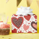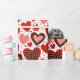 Handgezeichnet Valentinherzen und Kronen in verschiedenen Rottönen in einem nahtlosen Muster auf weißem Hintergrund.