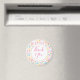 Ein Dankeschön Magnet mit einem leckeren und skurrilen Muster. Herz, Liebe Briefe, Muffins, Tulpen und Kirschen bringen Freude und Glück in dieses niedliche kleine Muster. Hübsche Pastellfarben. Ein weißer Kreis mit einem goldenen Imitat-Folienrahmen, der oben mit dem Text im Inneren platziert ist.