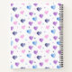 Magst du Notizbücher zum Thema Herz? Dieses Notizbuch hat ein Muster von Wasserfarbenherzen und Punkten in einem rosa, blauen und lila Farbschema.